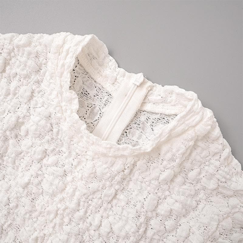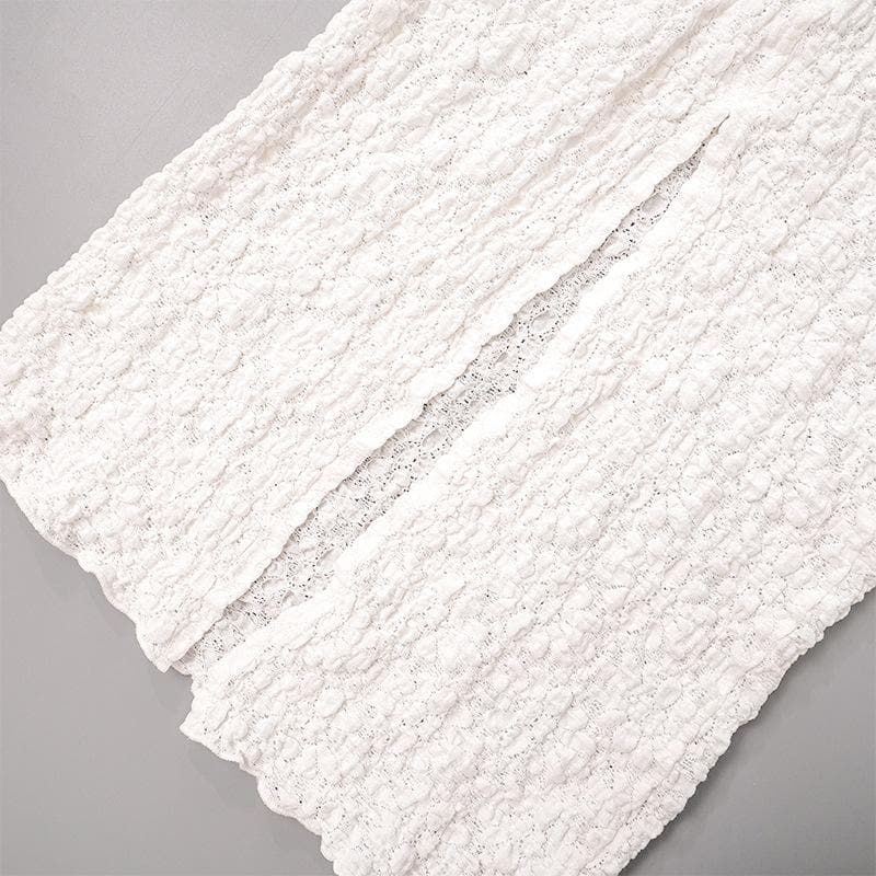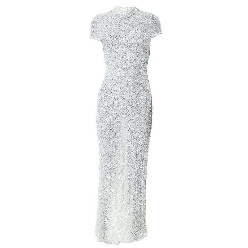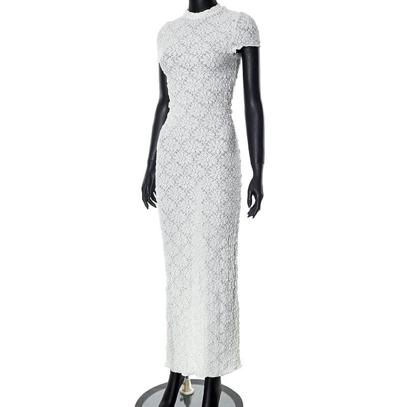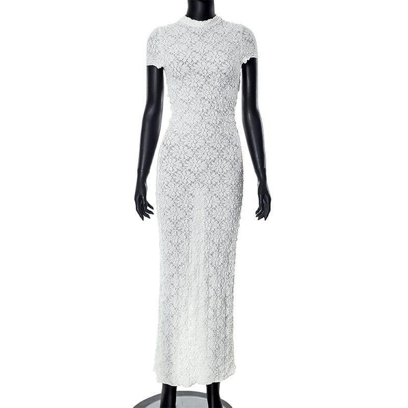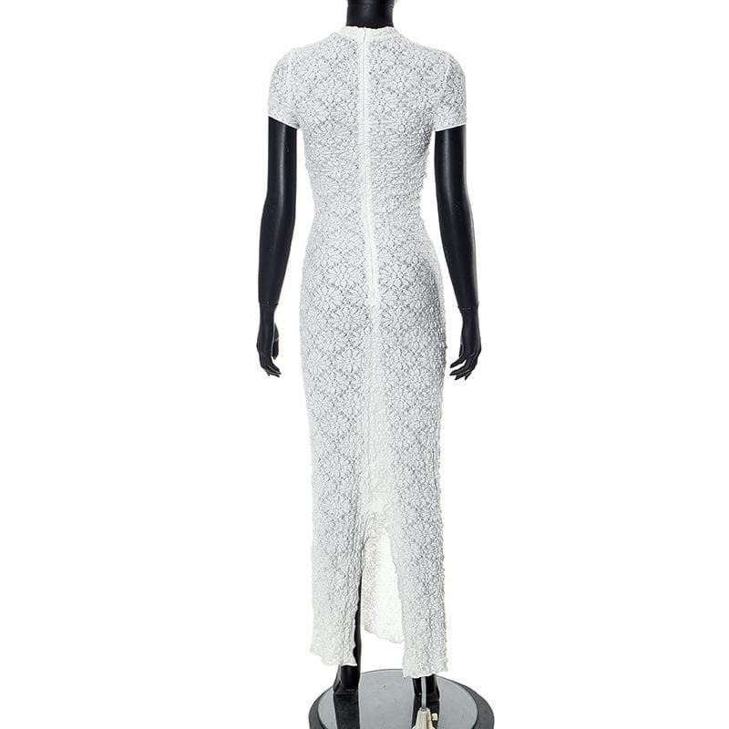 Short sleeve crewneck textured zip-up slit maxi dress