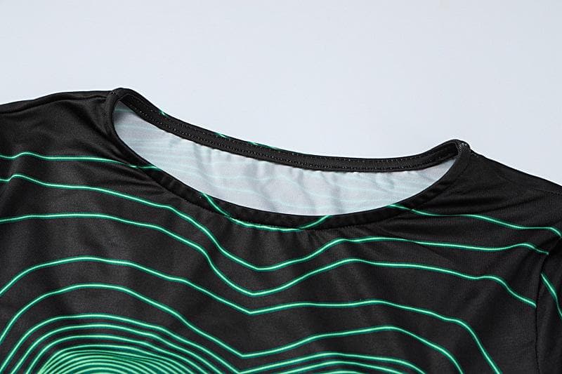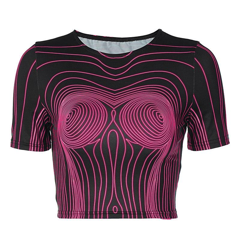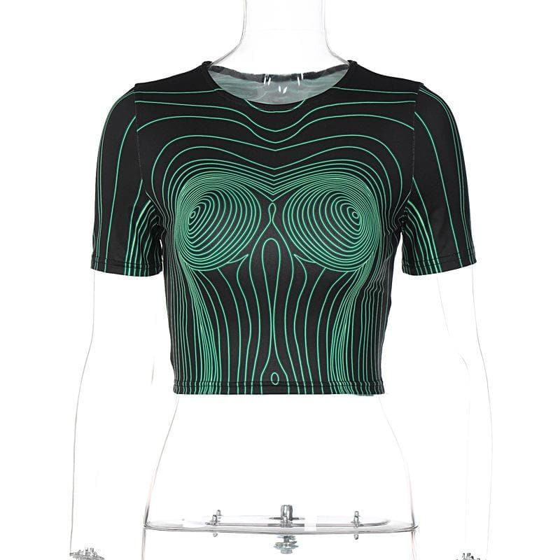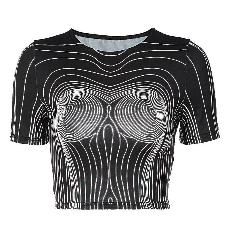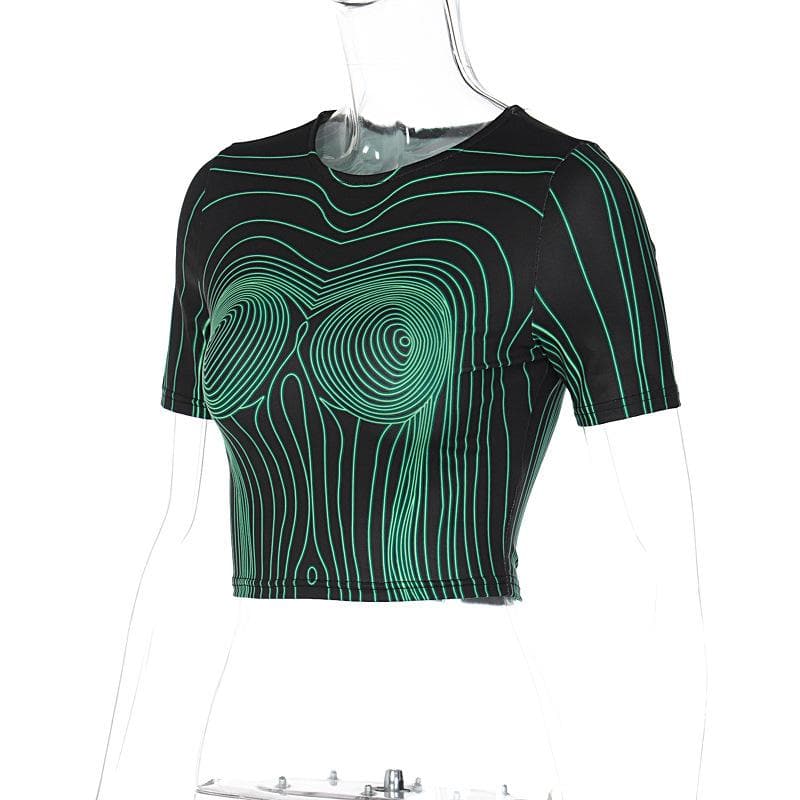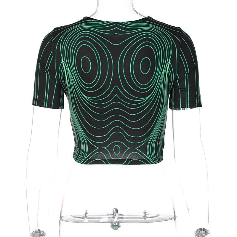Short sleeve round neck contrast abstract print crop top