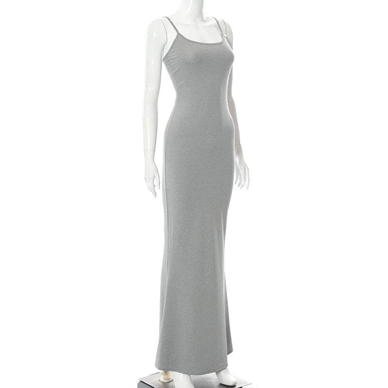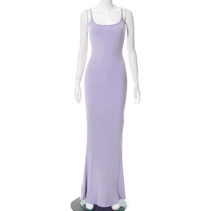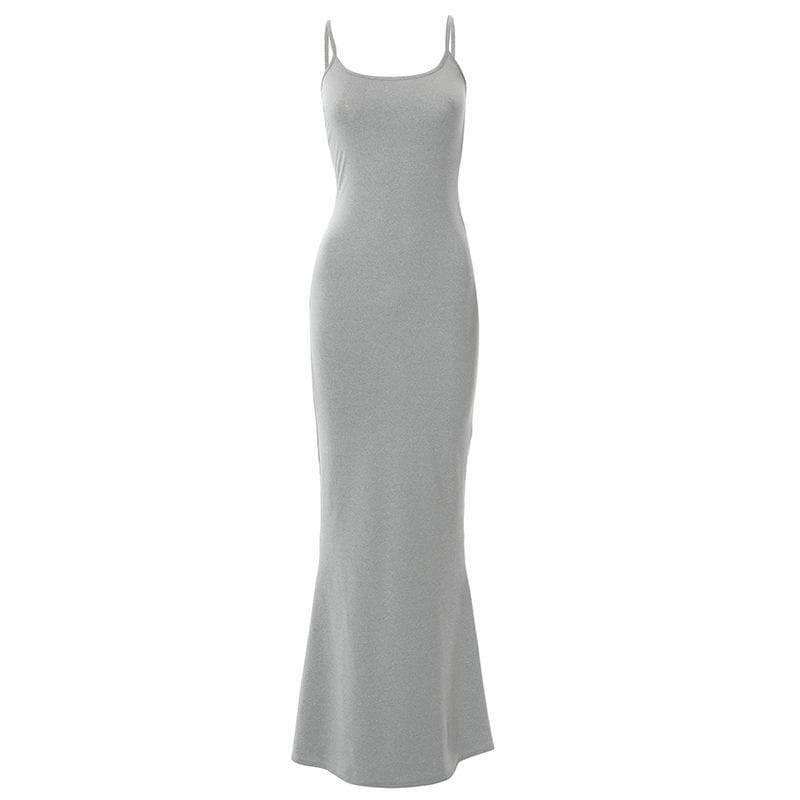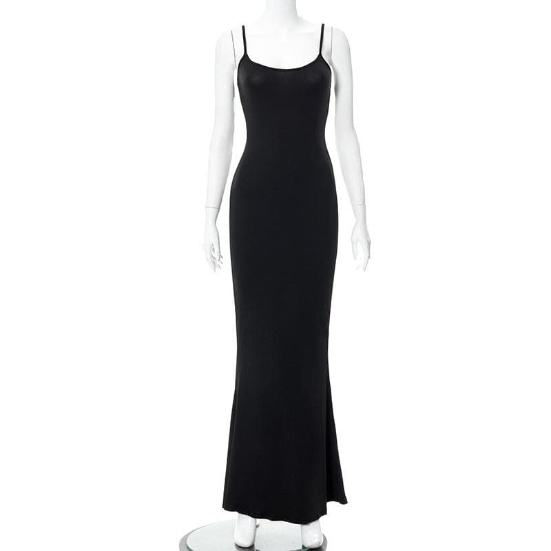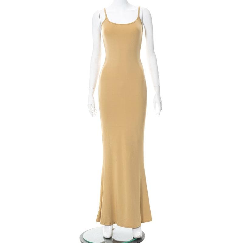 Sleeveless solid square neck mermaid hem cami maxi dress