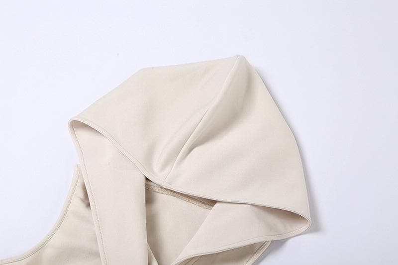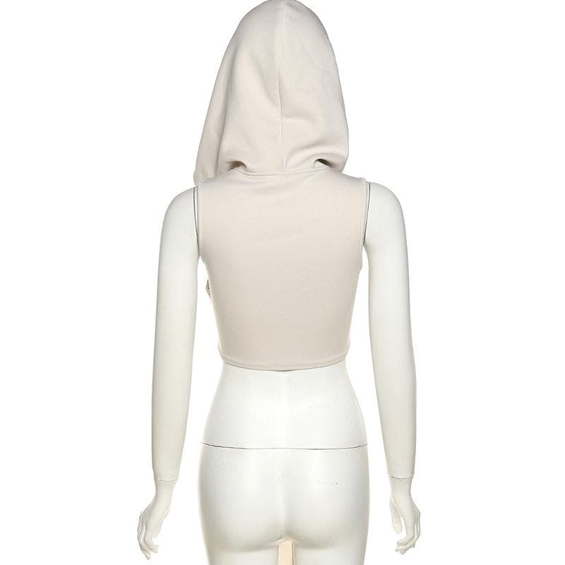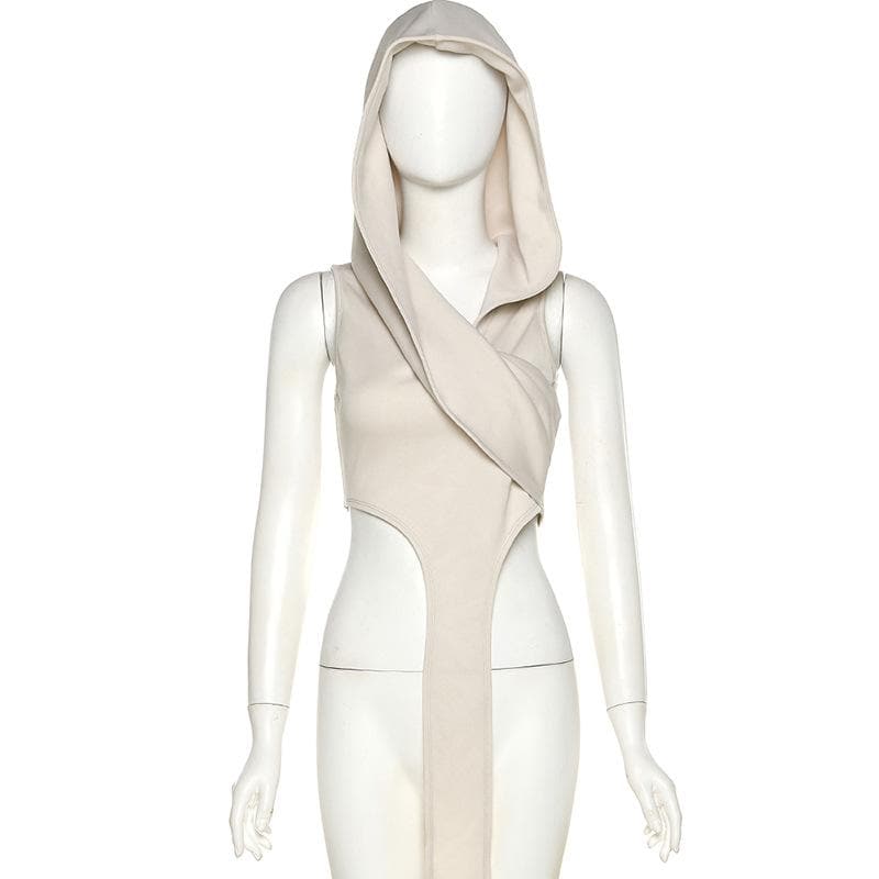 Sleeveless solid irregular ribbon hoodie ruched crop top