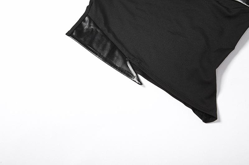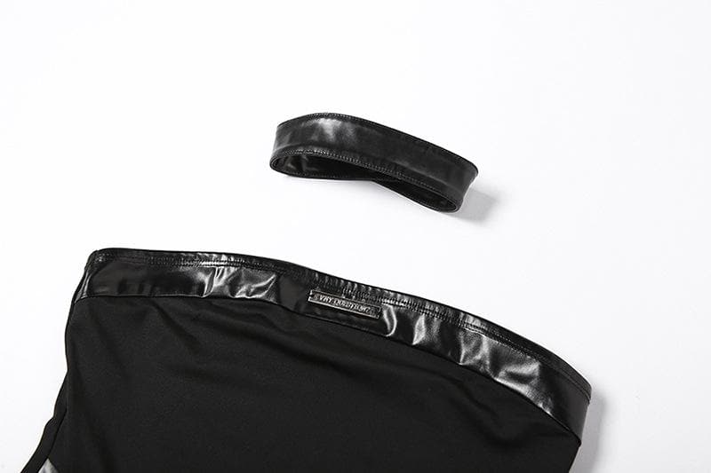 Sleeveless solid PU leather choker bustier tag backless crop top