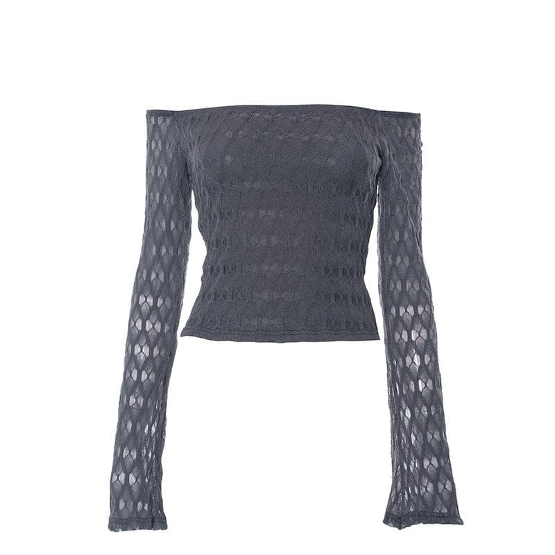 Textured solid off shoulder long sleeve top