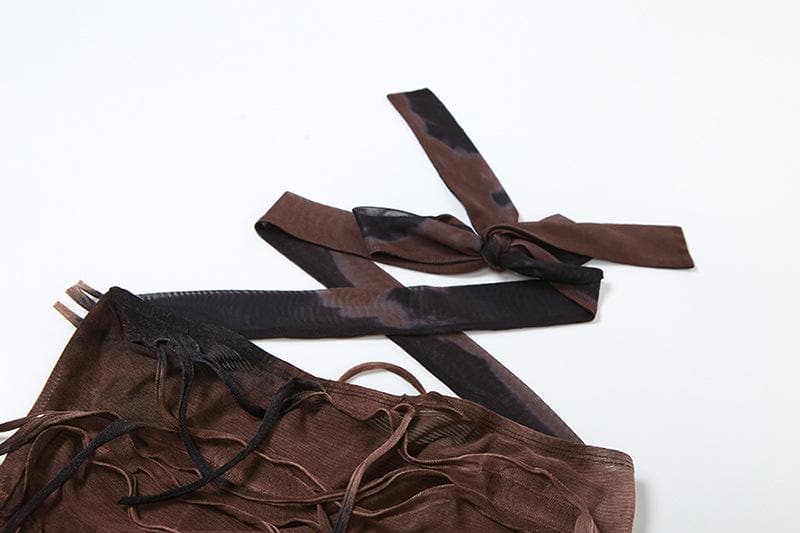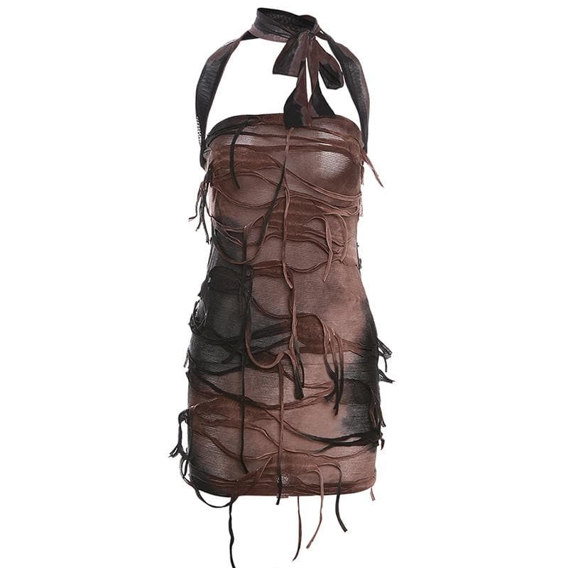 Tie dye textured halter backless contrast mini dress