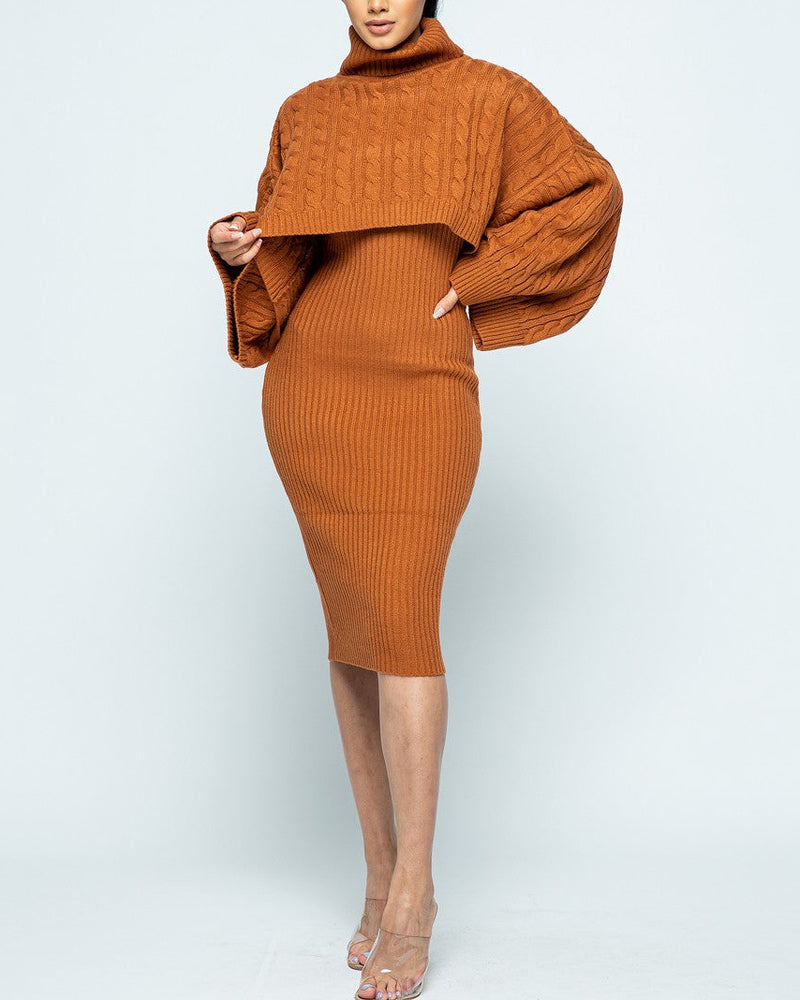 This two-piece set allows for versatile styling options. as the dress can be worn alone or layered with the high-neck sweater for added warmth and a fashionable appeal.