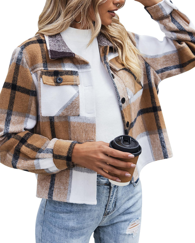 FEATURES: Vintage Flannel plaid shirts. designed with two buttoned chest pockets. button closures. lapel collars and button cuffs. The loose fit trendy cropped plaid jacket comes in various fashionable colors that never go out of style.