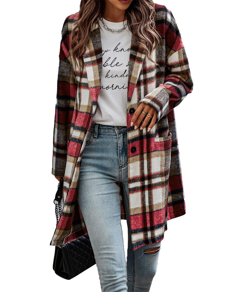 Zeagoo Women's 2023 Plaid Coat Mid Length Trench Coat Fall Oversized Coat with Pockets