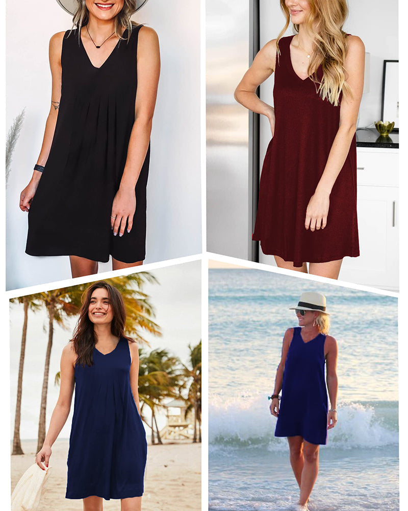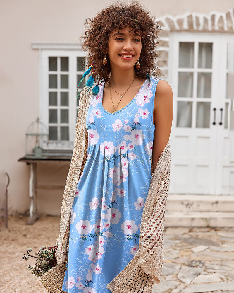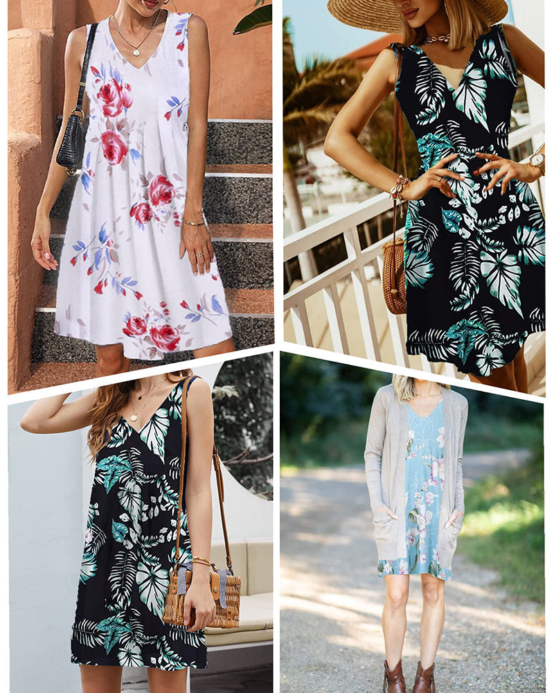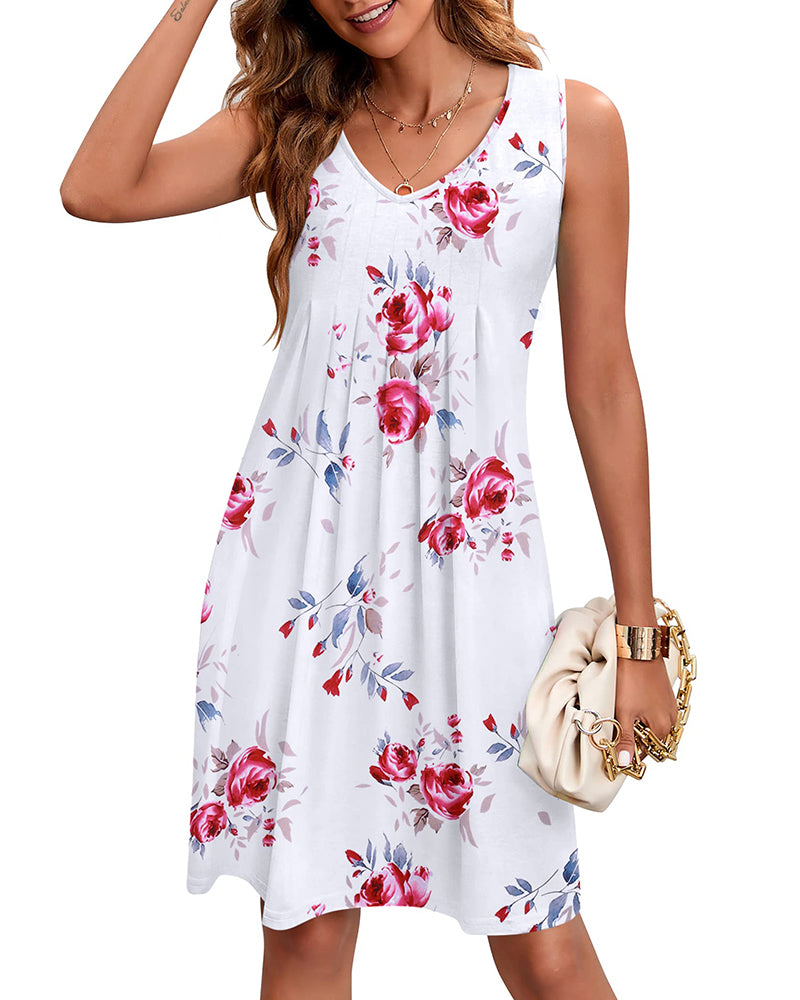 Women Summer Dresses Beach Floral Sleeveless Tshirt Sundress Pockets Casual Loose Flowy Tank Dress - Zeagoo (Us Only)
