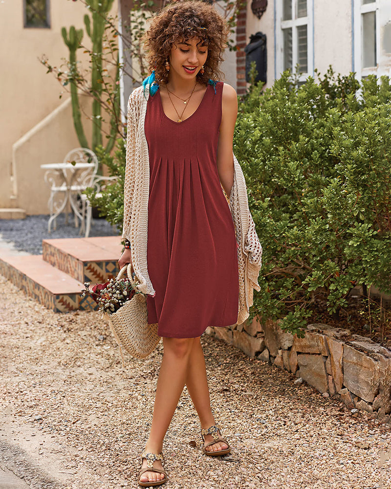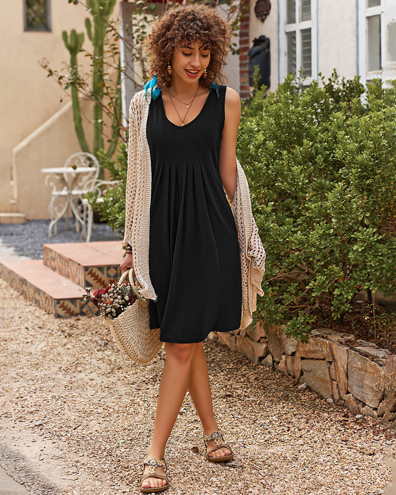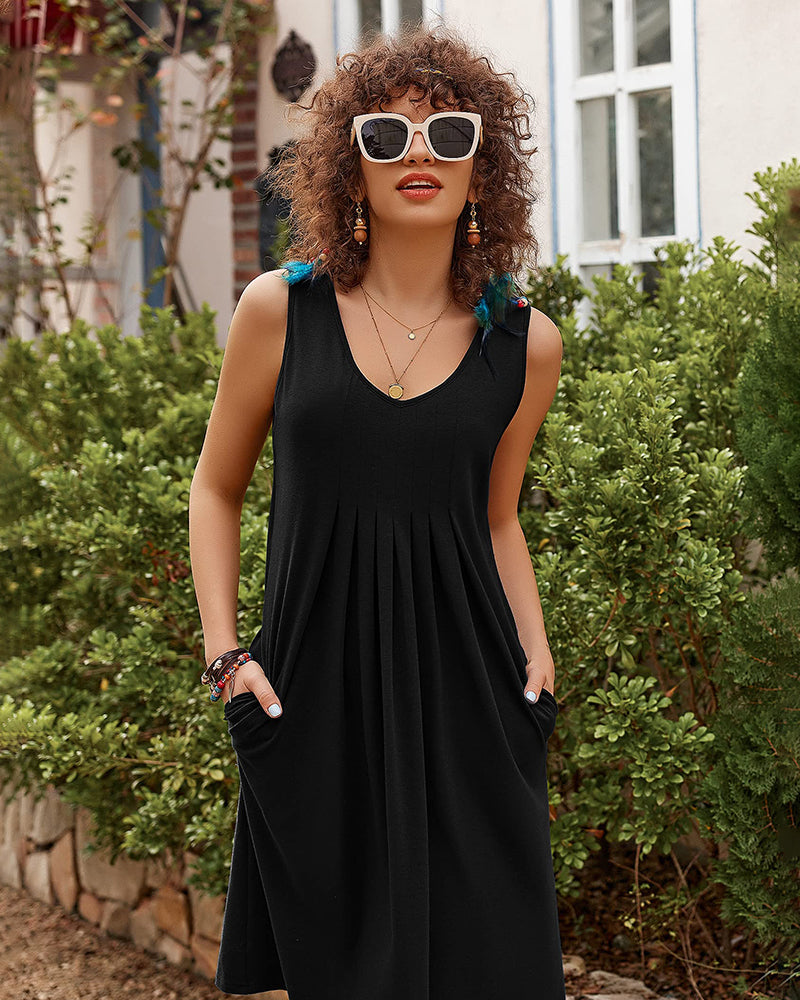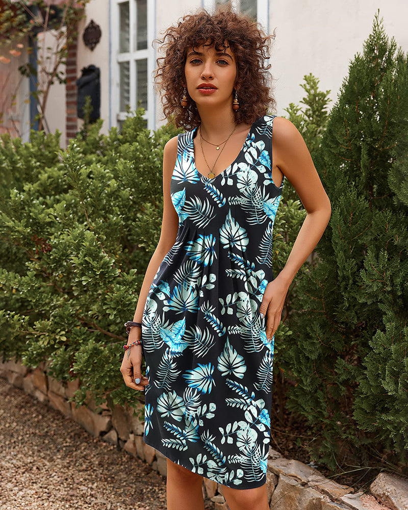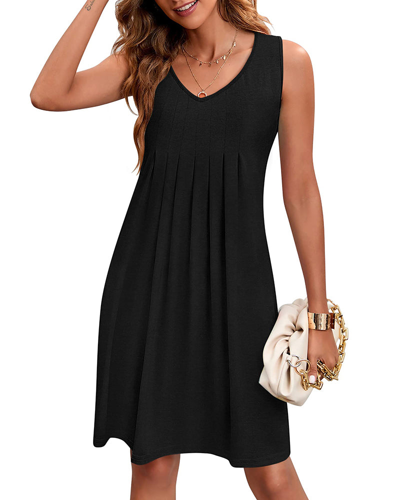 Women Summer Dresses Beach Floral Sleeveless Tshirt Sundress Pockets Casual Loose Flowy Tank Dress - Zeagoo (Us Only)