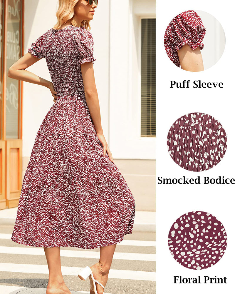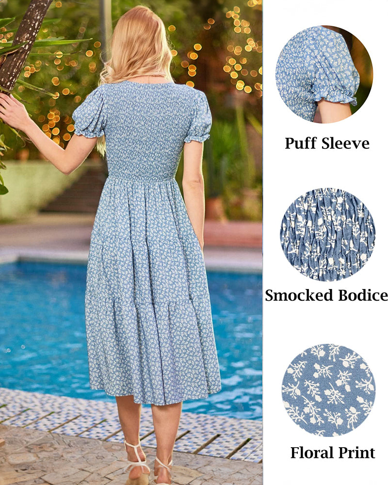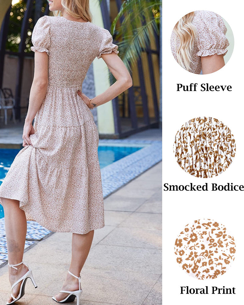 Boho Floral Print Vintage Maxi Dress - Zeagoo (Us Only)