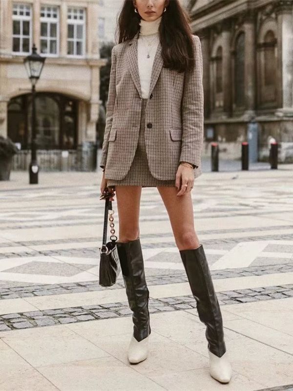Basic lapel collar blazer jacket for women. breasted front button design. two functional flap pockets. perfectly carrying some necessity. or nailing a chic look.