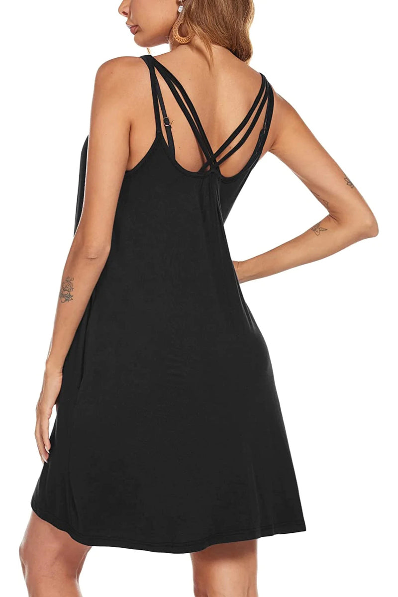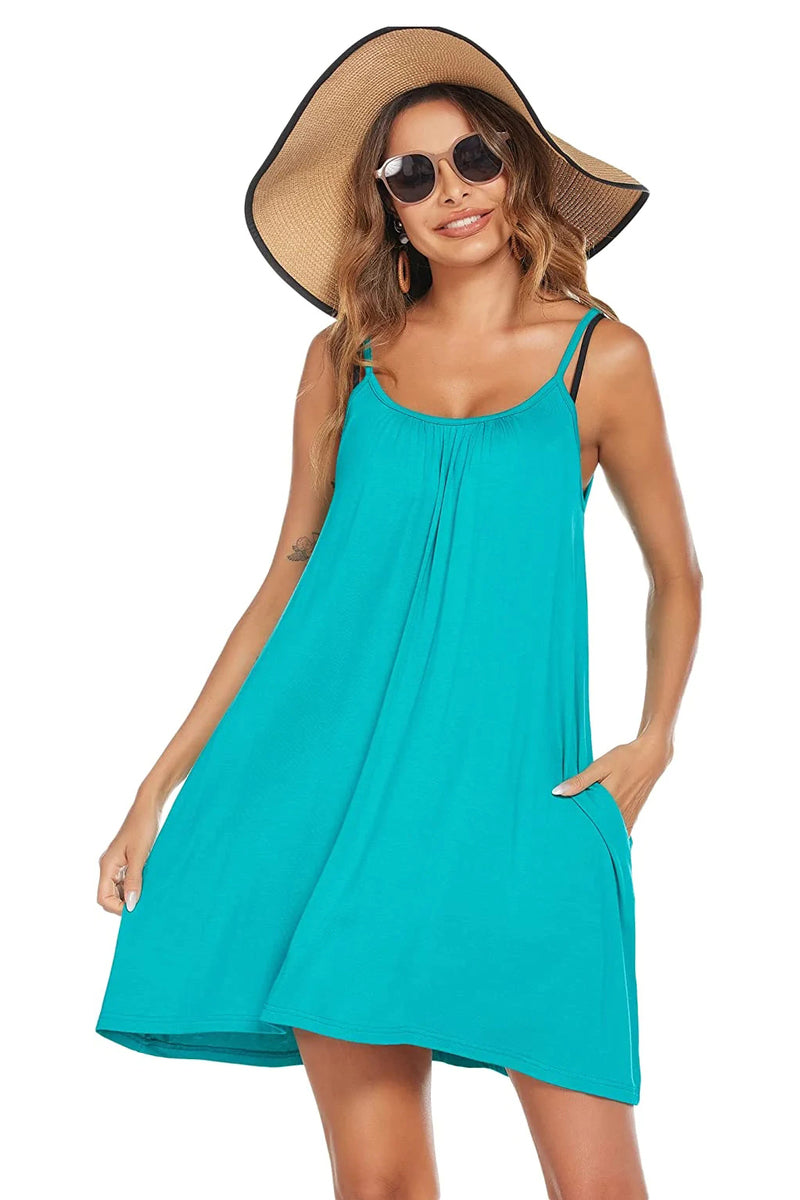 Spaghetti Strap Flowy Pleated Mini Dress - Zeagoo (Us Only)