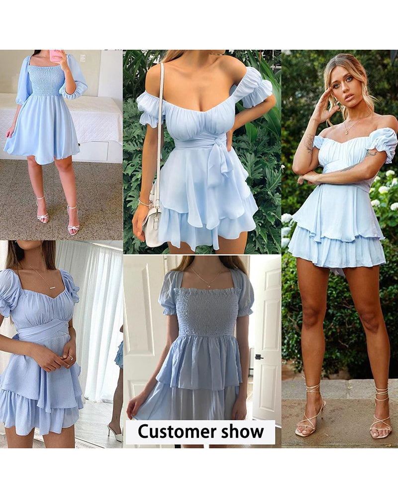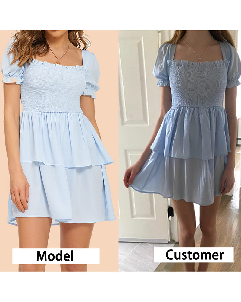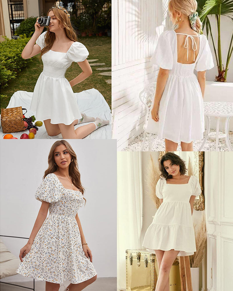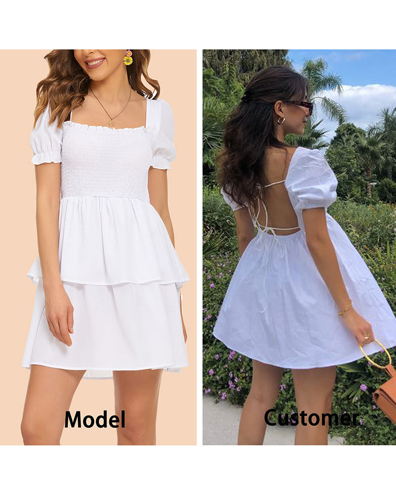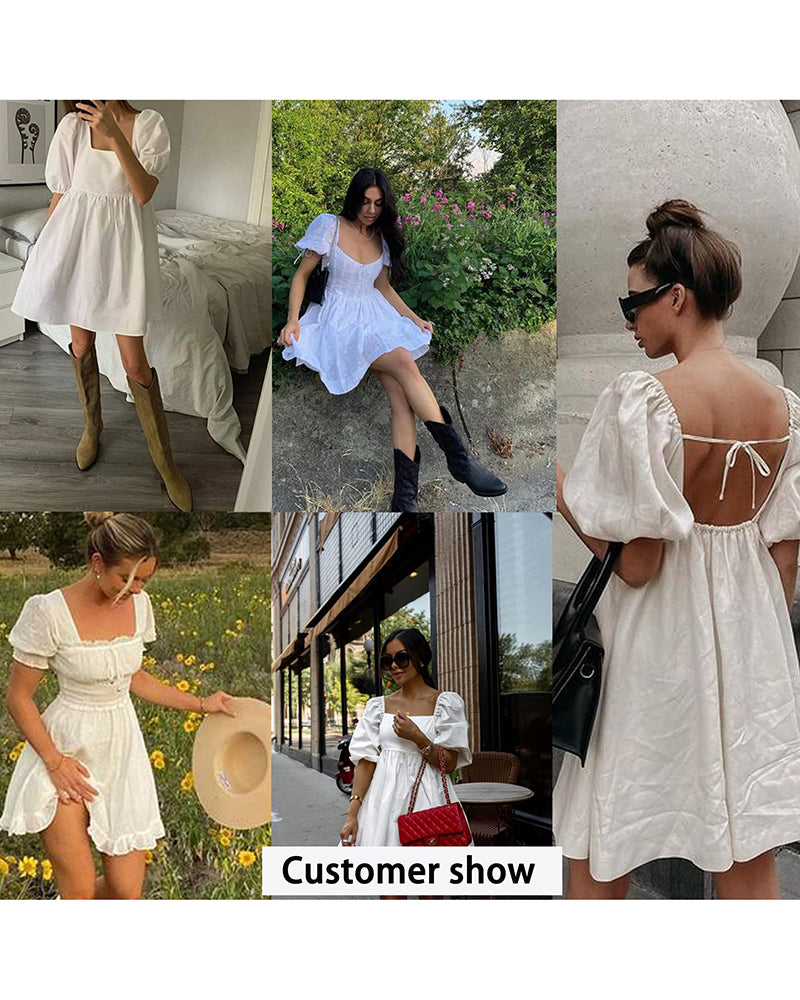 Lantern Sleeve Swing Mini Dress - Zeagoo (Us Only)